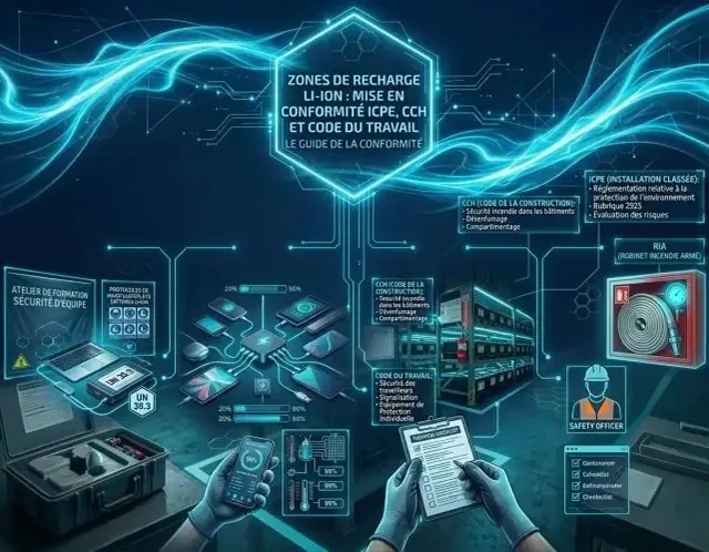 Zones de recharge Li-ion : mise en conformité ICPE, CCH et Code du travail