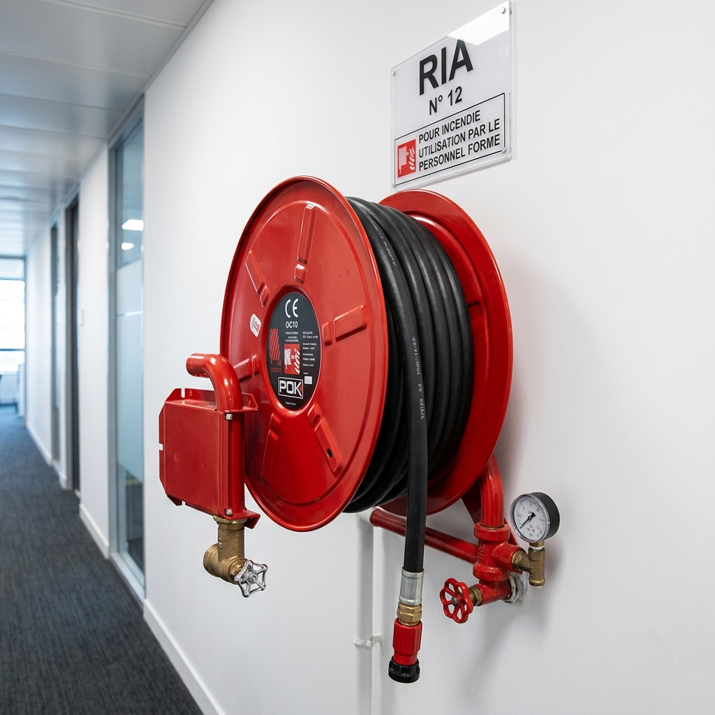 💡 CONSEIL PROFESSIONNEL — Si vous disposez de personnel formé aux premiers secours incendie, il peut utiliser des moyens de secours adaptés comme les RIA (Robinets d'Incendie Armés) qui permettent de délivrer un grand volume d'eau tout en se tenant à distance sécurisée de la batterie en combustion.